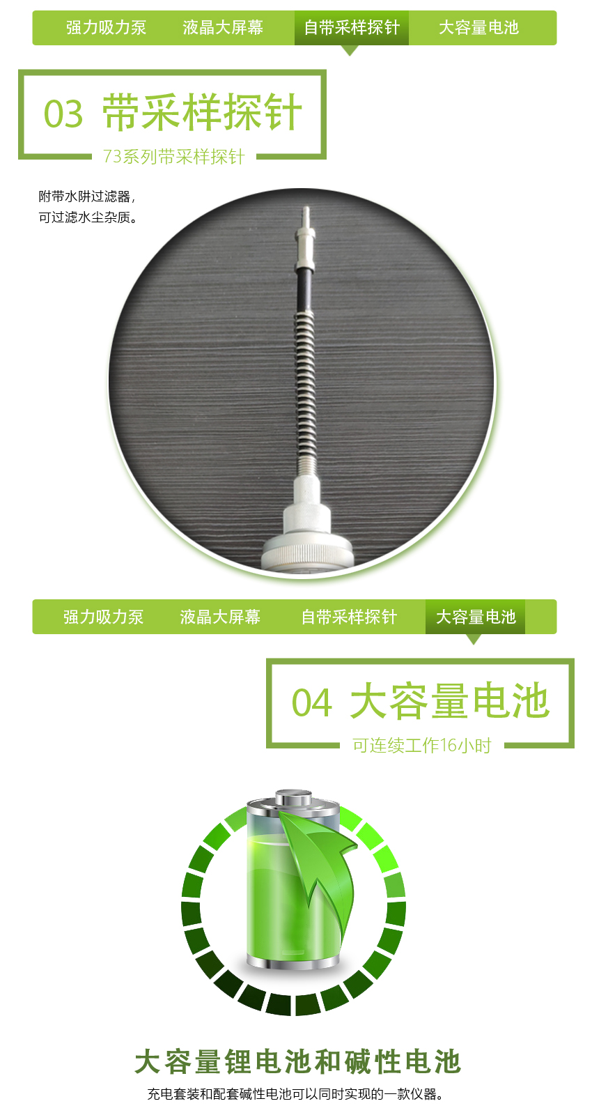 11、內(nèi)置強(qiáng)力吸氣泵,可外接長達(dá)30米采樣管