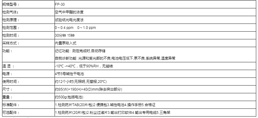 日本理研FP-31甲醛檢測儀采用試驗紙光電光度法: 當氣體吹到檢測TAB上時,TAB組合在一起的浸有發色劑的紙就會起化學反應而變色。比如甲醛同紙接確后含在紙里的試*就會同甲醛反應生成化合物,顏色就會從白色變成黃色。變色的程度可反映出所受光的反射光量。反射光量的強度變化率可以作為氣體濃度工應答。預先設定檢量線,便可通過檢測對象氣體的應答值來決定氣體的濃度。