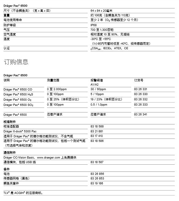 產品名稱:德爾格Pac6500單一氣體檢測儀