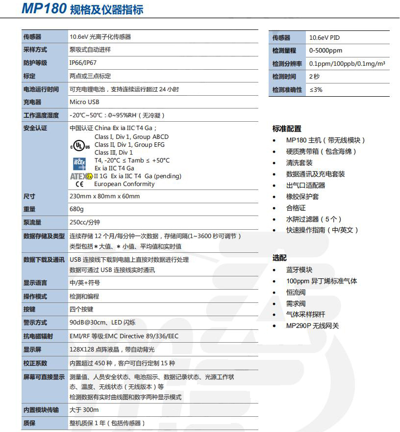 美國盟莆安MP180VOC檢測儀