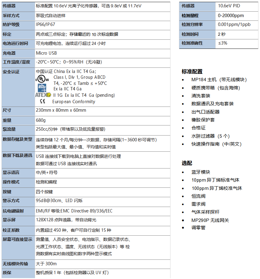 MP184 手持式檢測(cè)儀秉承了將 PID 方式應(yīng)用于 VOC 快速檢測(cè)的初衷,為客戶提供便攜、準(zhǔn)確、快速和兼具經(jīng)濟(jì)性的檢測(cè)產(chǎn)品。MP184 實(shí)時(shí)檢測(cè)數(shù)據(jù)有圖形和數(shù)字兩種顯示模式,智能繪圖顯示氣體濃度動(dòng)態(tài),支持中英文操作界面;低功耗檢測(cè)器,一次充電可支持超過 24 小時(shí)連續(xù)檢測(cè);數(shù)據(jù)自動(dòng)存儲(chǔ),數(shù)據(jù)下載方式可以通過有線或者無線方式,數(shù)據(jù)實(shí)時(shí)通訊亦可以選擇有線或者無線方式。其中無線方式可以靈活的選擇藍(lán)牙或者無線模塊, MP184 內(nèi)置跌倒報(bào)警結(jié)合無線傳輸功能,將現(xiàn)場(chǎng)檢測(cè)數(shù)據(jù)實(shí)時(shí)傳輸?shù)奖O(jiān)測(cè)端同時(shí)保護(hù)了現(xiàn)場(chǎng)工作人員的職業(yè)衛(wèi)生健康與安全。