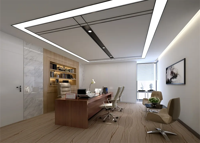 現代辦公室設計越來越注重將自然元素引入室內環境。通過引入植物、自然光和自然材質,不僅能改善辦公室的空氣質量,還能營造出放松和舒適的氛圍。例如,設置綠色植物墻或室內花園,不僅美化空間,還能凈化空氣;充足的自然光線則有助于提高員工的工作效率和情緒,減少辦公室內的壓抑感。