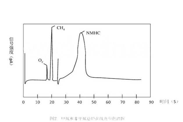 (3)采用兩個定量環,兩根色譜柱,一個F ID檢測器測定總烴和甲烷的濃度,色譜圖見圖3