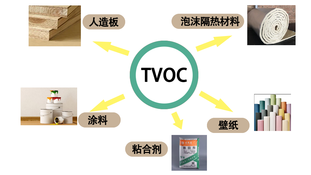 VOC室外主要來自燃料燃燒和交通運輸;室內主要來自燃煤和天然氣等燃燒產物、吸煙、采暖和烹調等得煙霧,建筑和裝飾材料、家具、家用電器、清潔劑和人體本身的排放等。