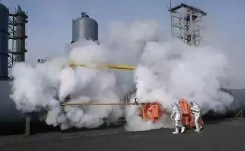 疏散場所內所有未防護人員,并向上風向轉移。泄漏處置人員應穿上全封閉重型防化服,佩戴好空氣呼吸器,在做好個人防護措施后,用噴霧水流對泄漏區域進行稀釋。通過水槍的稀釋,使現場的氨氣漸漸散去,利用無火花工具對泄漏點進行封堵。