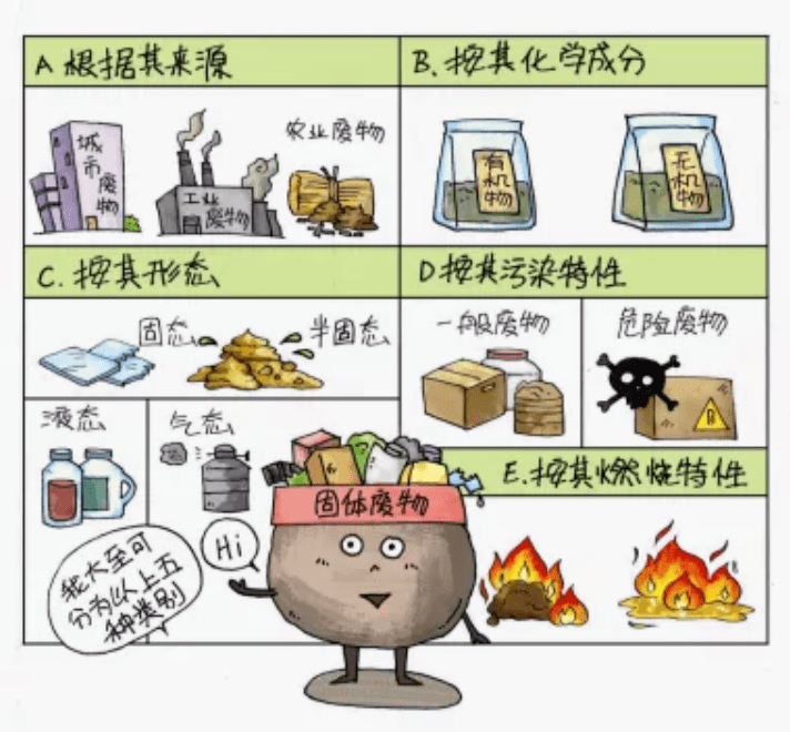 根據(jù)《中華人民共和國固體廢物污染環(huán)境防治法》(1995年公布)分為城市生活垃圾、工業(yè)固體物和危險廢物。