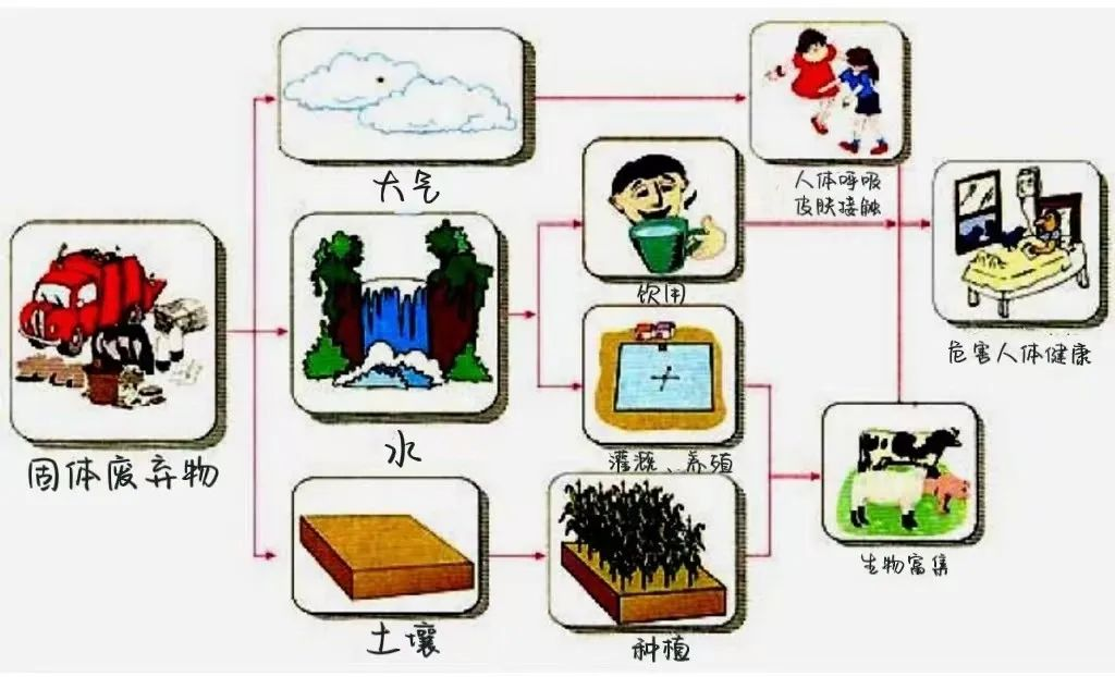而除了上述途徑以外,有些固體廢物還可能造成燃燒、爆炸、接觸中毒、腐蝕等特殊損害。另外,側(cè)體廢物還可能通過植物和動物間接地對人類的健康造成危害,例如重金屬污染等。