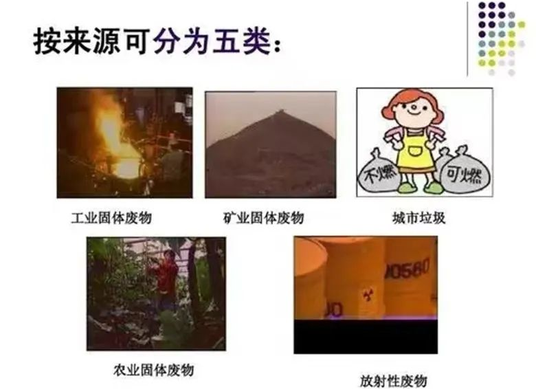 此外,固體廢物還可分為有毒和無毒的兩大類。有毒有害固體廢物是指具有毒性、易燃性、腐蝕性、反應(yīng)性、放射性和傳染性的固體、半固體廢物。